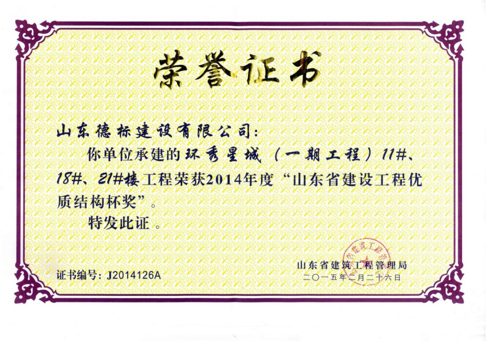 2014年度山東省優(yōu)質(zhì)結(jié)構(gòu)杯-環(huán)秀星城一期工程11#、1···