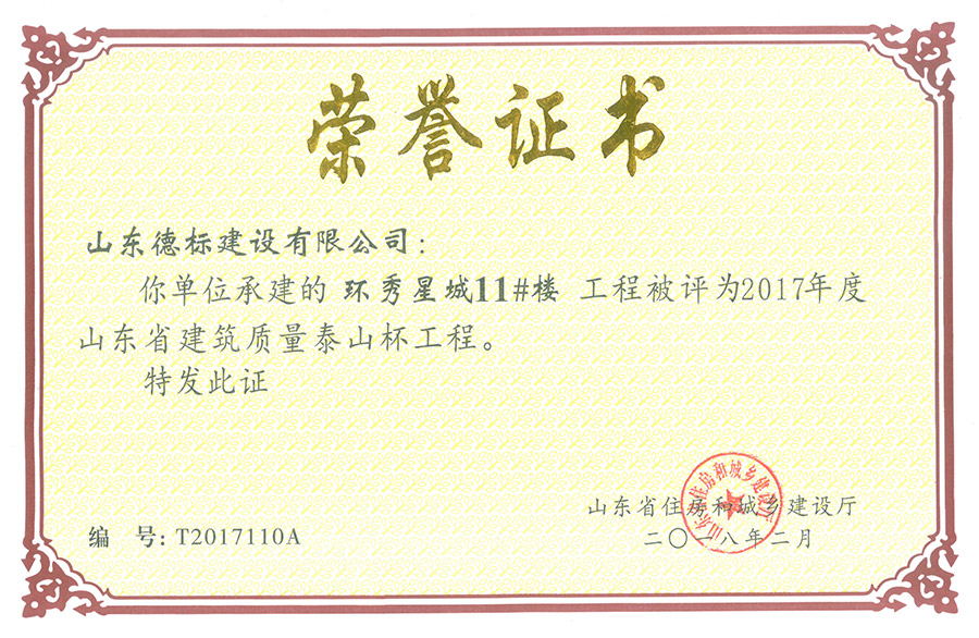 2017年度山東省建筑質(zhì)量泰山杯-環(huán)秀星城11#樓