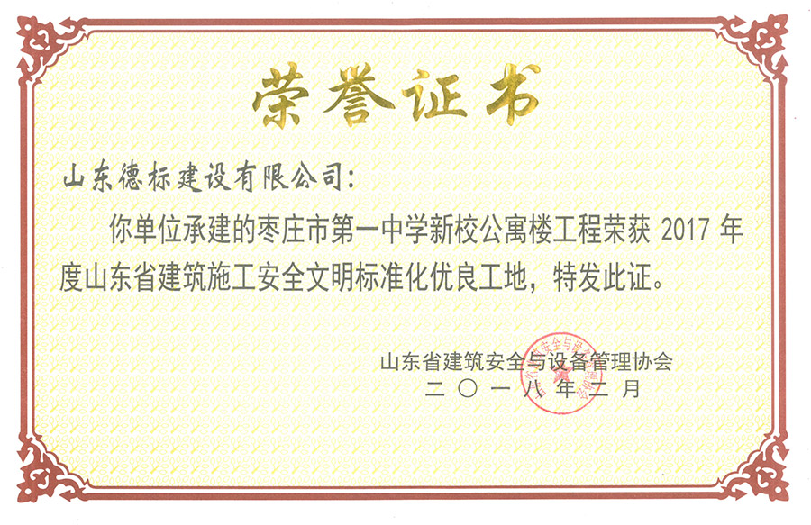 2017年度山東省建筑施工安全文明標(biāo)準(zhǔn)化優(yōu)良工地-棗莊市···