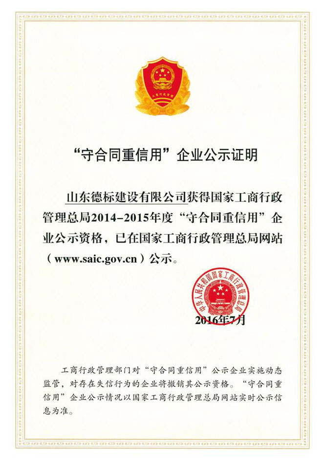 國家工商行政管理總局2014-2015年度“守合同重信用···