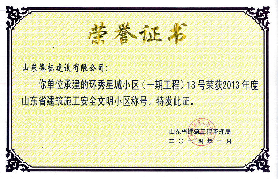 2013年度環(huán)秀星城10#樓安全文明小區(qū)